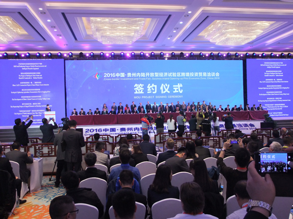 【香港商報網訊】記者張涵坤報導:10日上午9時,“讓世界分享貴州、讓貴州走向世界”,2016中國·貴州內陸開放型經濟試驗區跨境投資貿易洽談會在貴安新區開幕。貴州省委副書記、省長孫志剛出席並講話,貴州省委常委、常務副省長秦如培主持開幕式,中國銀行行長陳四清、中國貿促會副會長盧鵬起、國家發展改革委西部開發司司長田錦塵、瑞士蘇黎士保險集團副總裁加布裡埃爾、英中貿易協會中國區總裁衛可·威爾遜以及澳大利亞中部高地發展公司總經理霍布斯·桑德拉等先後發言。來自世界38個國家和地區的企業和客商相聚一堂,共推貴州跨境投資與貿易合作。