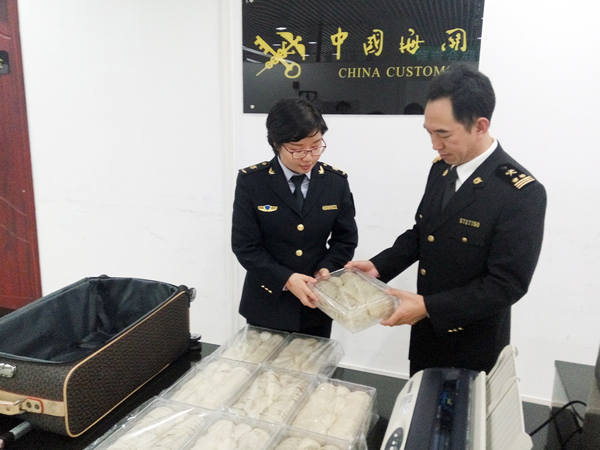 橫琴口岸海關關員現場查獲旅客違規攜帶大量燕窩