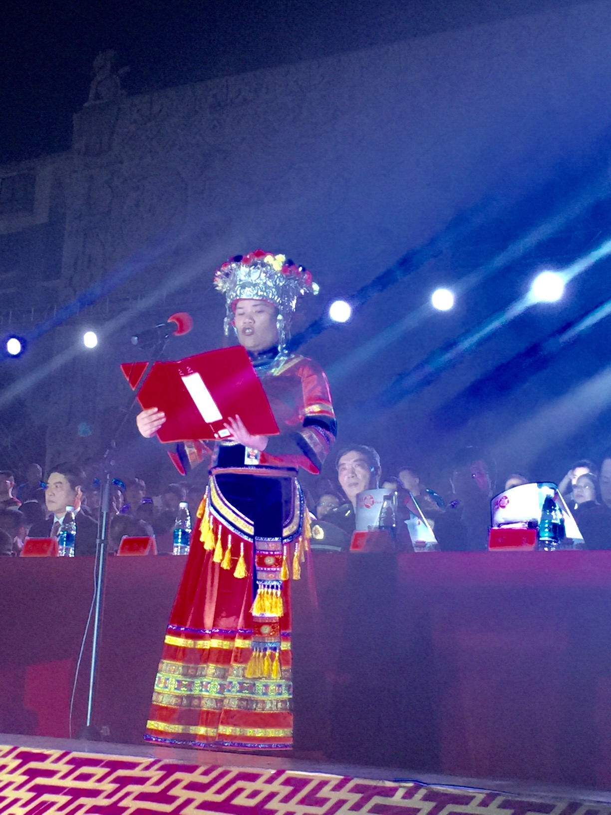 【香港商報訊】記者唐勇平 通訊員 楊丁香 報道 : “聽千年瑤韻,展江華風采”。11月14日晚,2016年神州瑤都(湖南江華)“瑤族盤王節”在江華縣圖騰園隆重開幕,身著節日盛裝的縣內外千萬瑤胞齊聚于此,隆重慶祝盤王生日。開幕式由縣委副書記龍賦云主持,縣委副書記、縣長龍飛鳳致辭,市人大常委會副主任李俊湘宣布盤王節開幕。