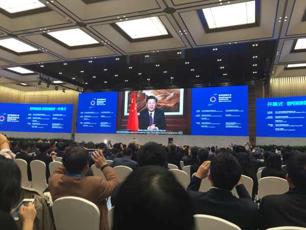 中國共產黨中央委員會總書記習近平在第三屆國際互聯網大會上以視頻形式發表重要講話。