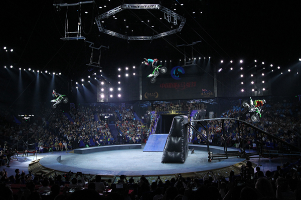 本屆馬戲節開幕式共分為原創表演、開幕式儀式部分和馬戲節目表演三大部分。在開幕式上,主辦方精選了具有代表性的馬戲節參賽參演節目演出。其中,來自俄羅斯/白俄羅斯的演員們上演了一場驚心動魄的《暮光躍影—跳板》;主場作戰的中國隊則上演了霸氣十足的《雲起龍騰—集體造型技巧》,還有俄羅斯、德國、法國的演員們,憑借著《伏拉基米爾小醜》和《Housch ma Housch—滑稽小醜》等精彩節目把在場所有觀眾逗樂。最霸氣、最熱血的節目,則要數來自澳大利亞的《極速飛車》。象征著速度與激情的摩托車,在瘋狂的特技摩托車手中發出刺耳的咆哮。