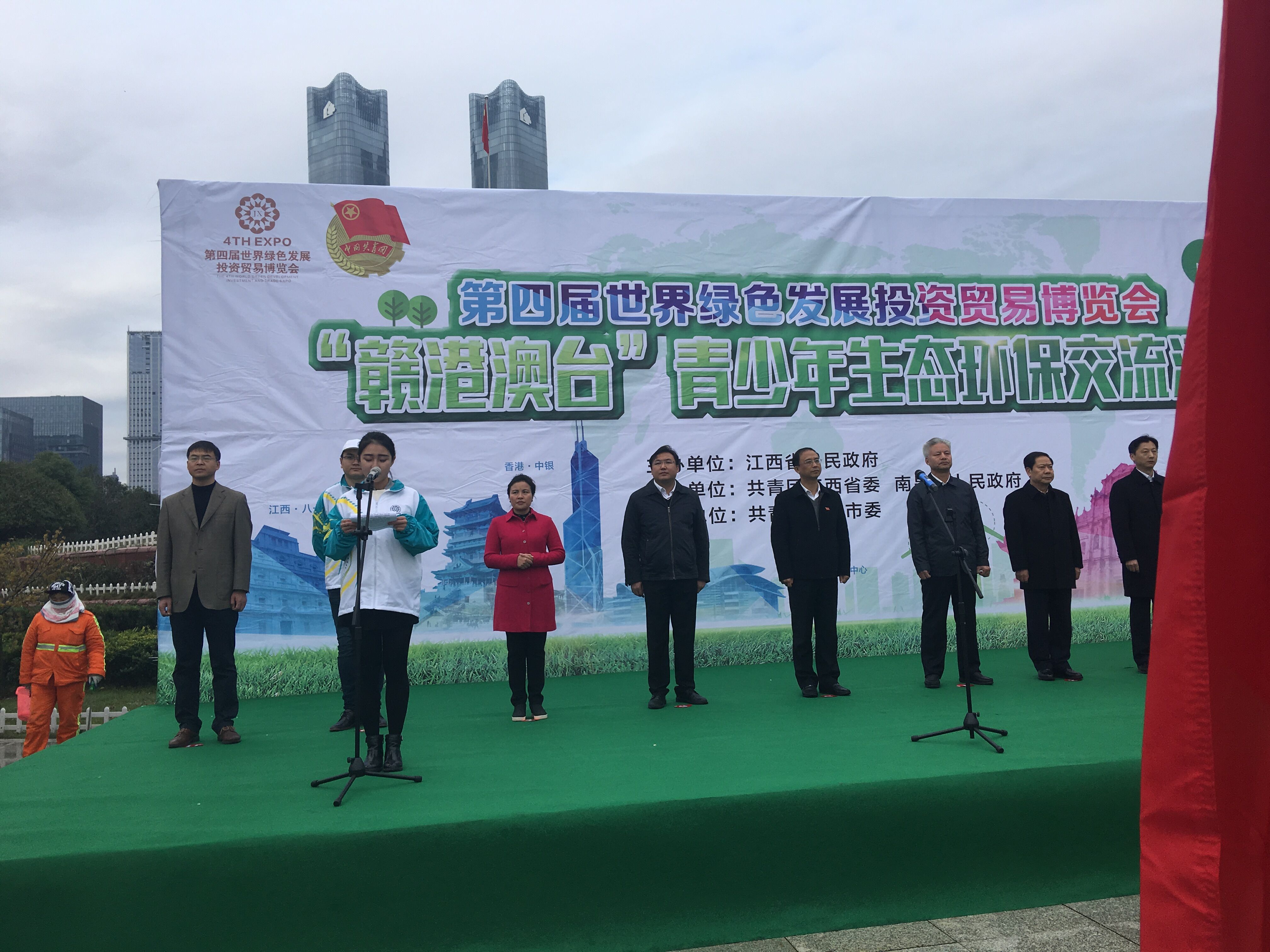 【香港商報訊】記者林穎萍報道:作為第四屆世界綠色發展投資貿易博覽會的主題活動之一,11月26日上午,贛港澳臺青少年綠色生態環保交流活動在南昌市紅谷灘新區秋水廣場舉行。本次交流活動以“加強青少年環保實踐,探索區域化合作”為主題,邀請了“贛港澳臺”兩岸四地的青少年環保組織代表、全國知名環保專家、學者、政府部門、學生代表等近200人參加活動。