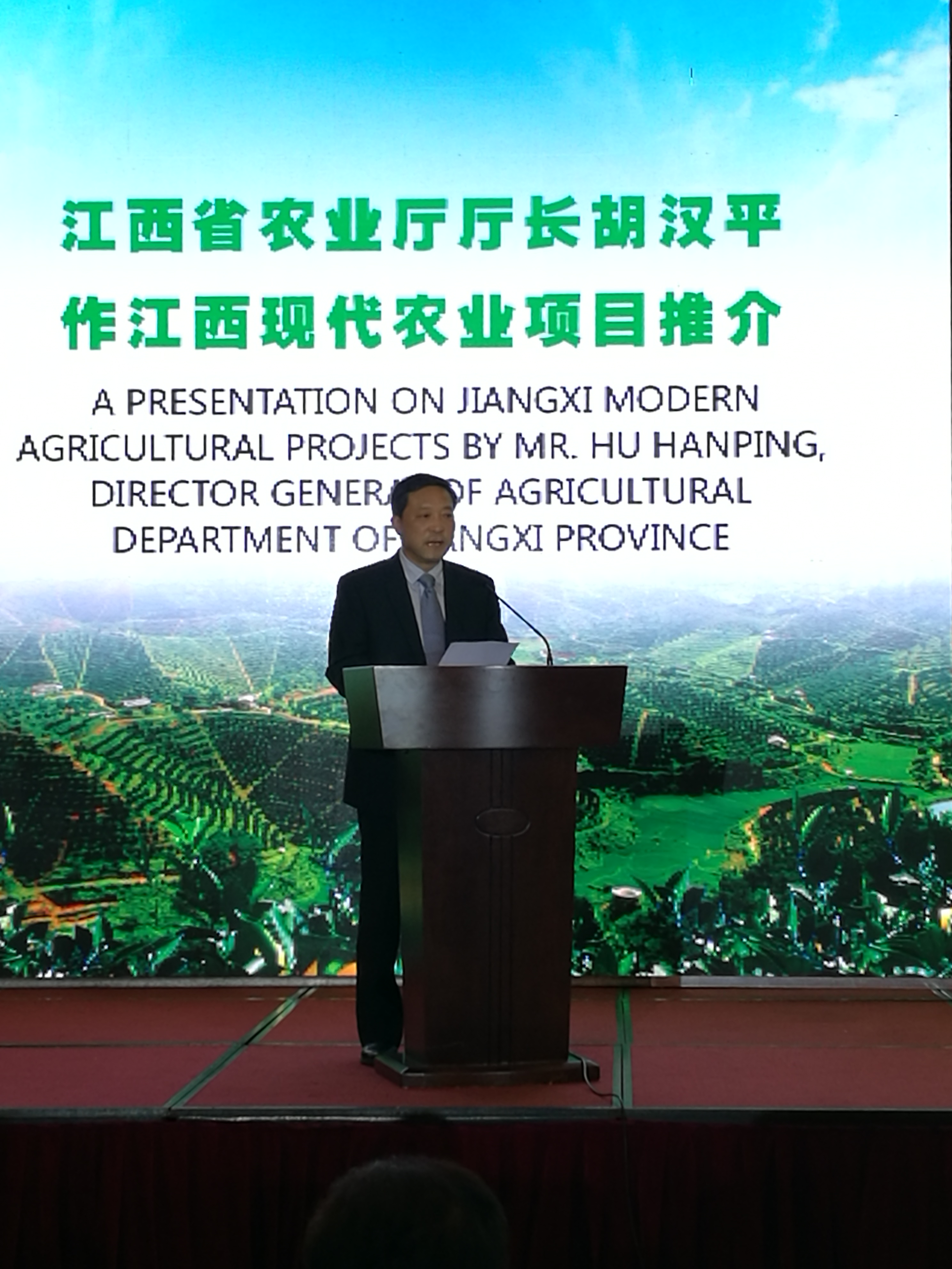 會上,江西省農業廳廳長胡漢平對江西現代農業做了主旨推介。他表示,綠色是江西的“主色”,也是江西農業的“底色”,綠色發展的因子已經深深植入江西老表的血脈,發展綠色生態農業已經成為廣大農民群眾的一種行為習慣。