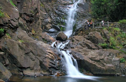 姑婆山内有酒坊、茶场、猴山,一路溪水环绕,山内有大小瀑布十几处,其中最壮观、最自然、最美丽的就是高约30多米的仙姑瀑布了。