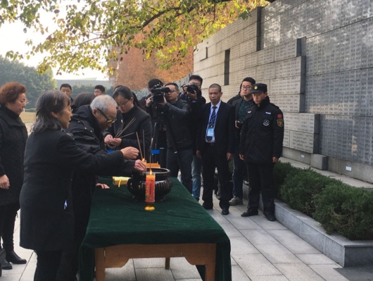 【香港商报网讯】记者宋璟报道:12月3日上午,南京大屠杀死难者遗属在南京大屠杀遇难同胞纪念馆遇难者名单墙前举行祭告活动,祭奠死难者。
