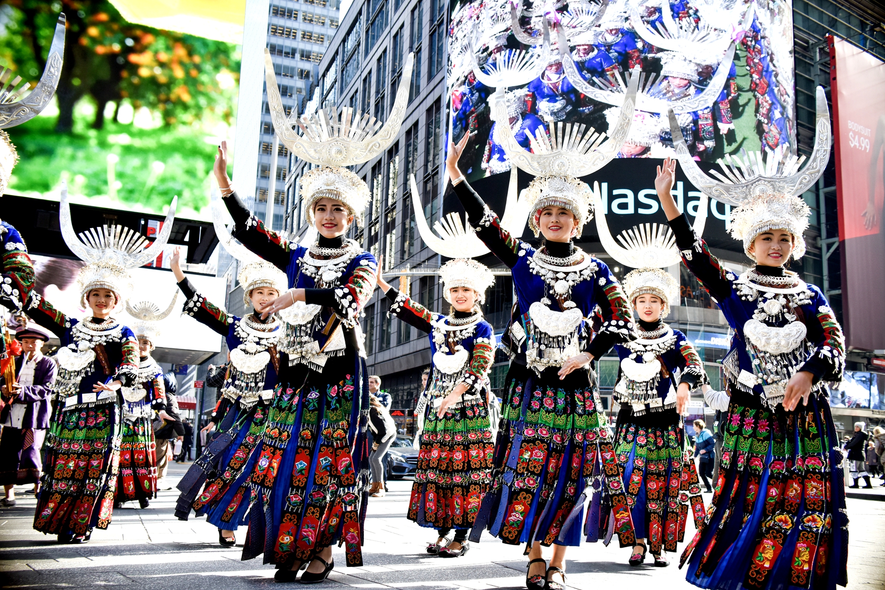 “美國紐約時代廣場又稱為“世界的十字路口”,這里是“吸引世界目光”的最佳窗口之一,我們選擇在這里展現我們的文化,就是為了將苗族文化推向世界,將美麗雷山與全人類共享。”苗家小伙阿龍事后向記者介紹說。