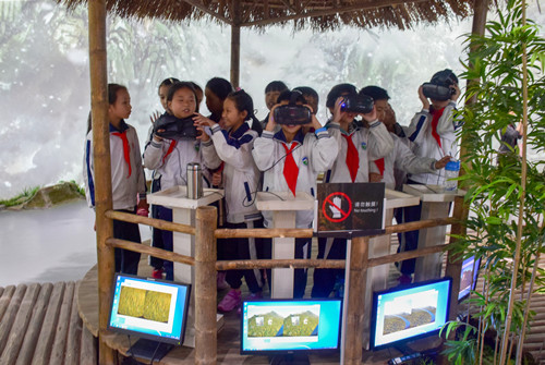 “带上眼镜就可以伸手触摸到植物,还可以和机器人对话,很开心!”来自罗浮山中心学校的陈同学还没说完,就立刻转身加入同学当中体验“步步生莲”的乐趣。据了解,葛洪中医药博物馆运用先进的科学技术展示中医药文化。在一层葛洪鲍姑园里,游客们可带上360度观察罗浮山的VR眼镜,在虚拟的环境中寻找到有代表性的药用植物,如青蒿、艾、石菖蒲等,了解中草药们的生长环境和相关知识;还可通过大型水墨动画、多媒体互动等声光电多种形式,了解到葛洪生平事迹以及葛洪与罗浮山的深厚渊源。而在三层葛洪医馆,还可和机器人葛洪对话,了解四季养生之术。