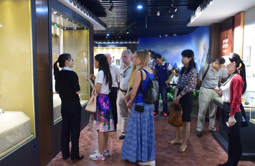 徜徉在中医药文化的海洋里,欣赏一件件中医药展览品,来自俄罗斯的宾客们正在认真的听讲解员讲解葛洪传奇的一生,了解葛洪和屠呦呦穿越千年“相遇”的故事,学习传统的中医药文化。并表示这种文化对他们来说很新奇,他们将不断加深对中医的认识,和身边的朋友分享中医药的魅力,让更多的人了解中医药文化。