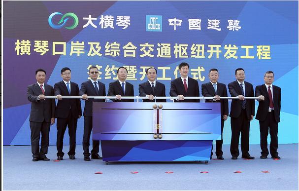 活动仪式上,珠海大横琴口岸实业有限公司与中国建筑股份有限公司签订了横琴口岸及综合交通枢纽开发工程项目合作开发合同;与中国建筑第二工程局有限公司签订了横琴口岸及综合交通枢纽开发工程项目建设工程施工合同。