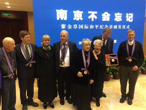 记者了解到,本次紫金草纪念章共颁发给约翰•拉贝、乔治•菲奇、罗伯特•威尔逊、克利福德•特里默、理查德•弗里曼•布莱笛、罗森等6位曾在南京大屠杀期间救助过南京民众的外籍人士。