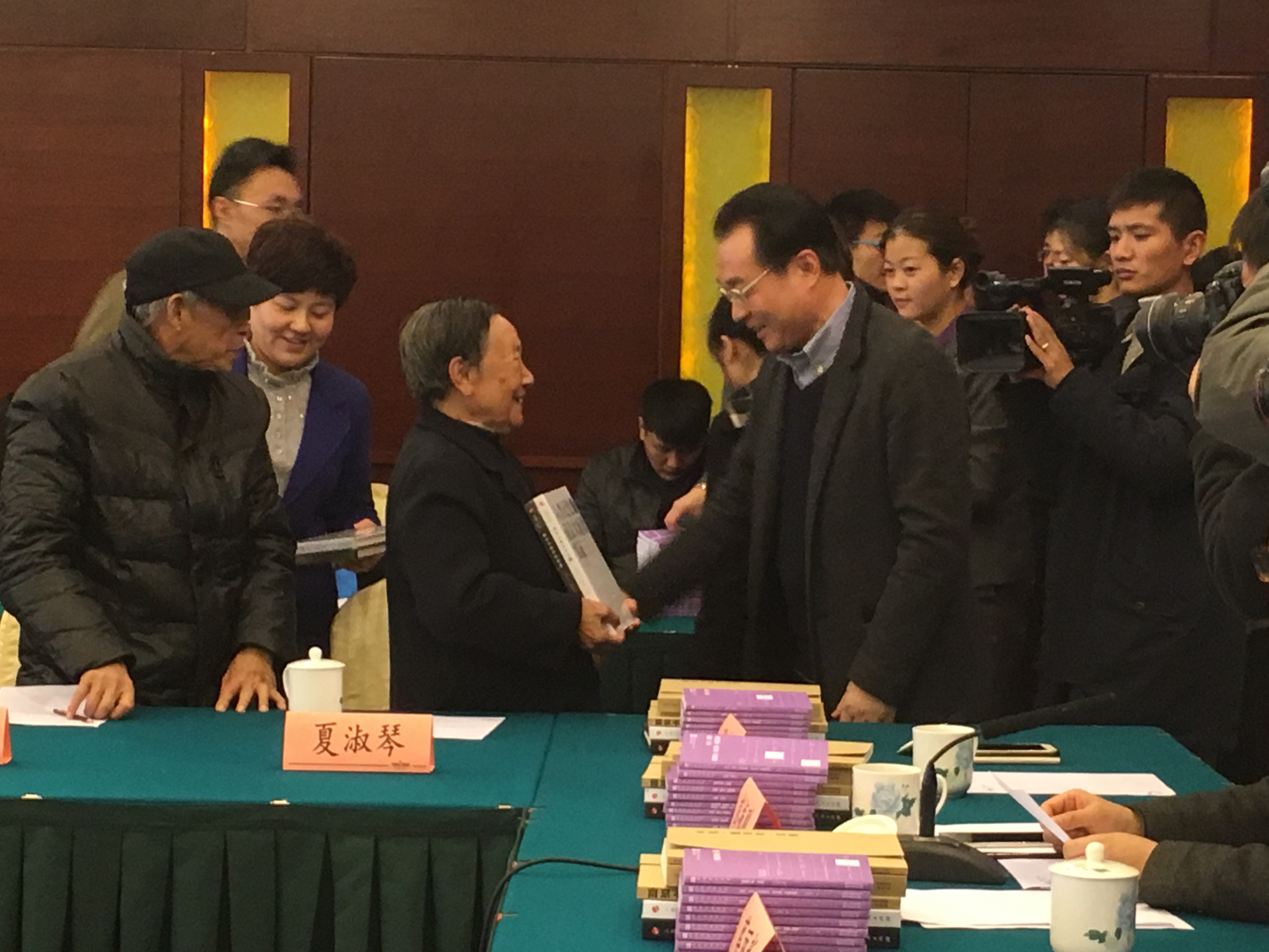 南京大屠殺倖存者代表夏淑琴老人(中)獲贈叢書