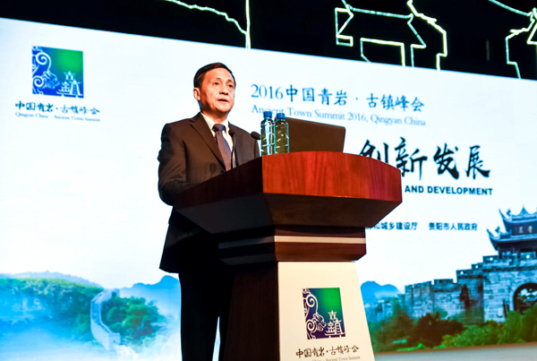 貴陽市長劉文新在致辭中說,古鎮是民族自信的結晶,人類文明的瑰寶,一街一巷都傳承著歷史文脈,一樓一閣都講述著歷史故事,一磚一瓦都記憶著歷史的印記。青岩古鎮歷經600多年的歷史積澱,鼓樓民居交相輝映,民風民俗、多元宗教共融共生,被譽為“中國歷史文化名鎮”、“中國最具魅力的小鎮”。本次峰會以“特色古鎮、創新發展”為主題,搭建了一個多領域的跨地域產學研相結合的高層次交流互動平臺。我們非常珍視古鎮歷史文化遺產,在建設全國生態文明示範城市、打造世界旅遊名城的過程中,將古鎮保護與打造陽明文化、民族文化、生態文化、公共文化、時尚文化“五張名片”有機結合,推動產、城、人文深度融合,讓古鎮煥發新活力,讓城市增加厚重感,為貴陽以大資料為引領,加快打造創新型中心城市增強了文化支撐,注入了精神動力。