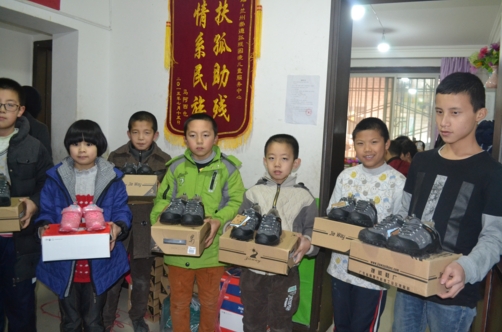 這個時候,孩子們陸續放學回來了,看到屋子裏站滿了人,他們並沒有什么膽怯,相反顯得很高興,當工作人員給他們取出送來的棉鞋的時候,孩子們高興地捧在手裏,沒有一絲的矯揉造作,他們真誠的笑容便是對愛心人士最大的慰藉。