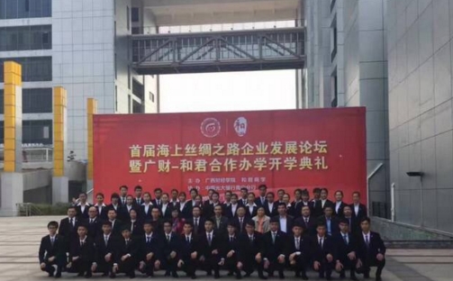 【香港商報網訊】記者闕琳晶報道:15日,首屆海上絲綢之路企業發展論壇暨廣西財經學院—和君商學合作辦學開學典禮在南寧舉行。來自政府部門、企業和高校的領導、專家學者齊聚一堂,見證校企合作新成果新模式,共商“一帶一路”背景下廣西企業的轉型升級與成長突破。論壇上,廣西財經學院首屆“廣財—和君工商管理班”正式開班。