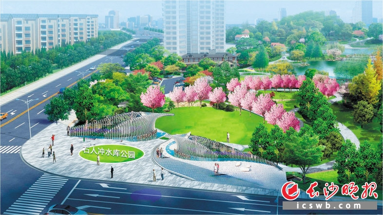 石人冲水库公园位于省政府西侧,天心区新姚路与新韶路交会处西南角。公园总用地112.17亩,定位为城市居住区公园。市园林局局长李志坚介绍,石人冲水库公园将依据现有的水体面积,做好水的“文章”,以“打造城市绿肺、生态港湾”为理念,突出“森林氧吧、负氧离子”的概念,采用山、水、人的互动,为市民、游客营造一种回归自然的生活理念。