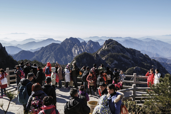 12月18日,黃山風景區天氣依舊晴好,遊客熱度不減,截至下午4時,共接待34398人,其中安徽遊客30891人。