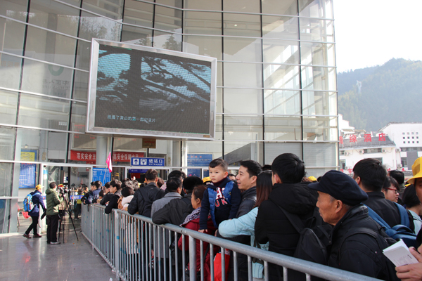 此次針對安徽遊客免門票的活動前期就已在微信微博中進行預熱,受到大量安徽遊客的關注,他們紛紛選擇週末出行,帶著家人、朋友來黃山欣賞美景。黃山今天的天氣十分適合出行,晴空萬里無雲,冬日陽光和煦,遊客能將雄奇俊秀的自然風光盡收眼底,欣賞大自然的鬼斧神工。
