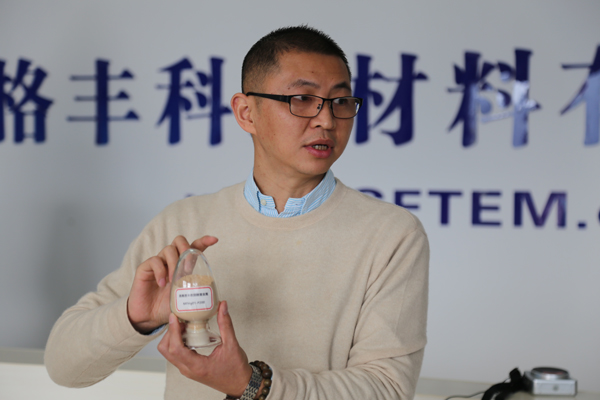 格豐科技材料有限公司總經理奉啟雲向記者解說公司技術