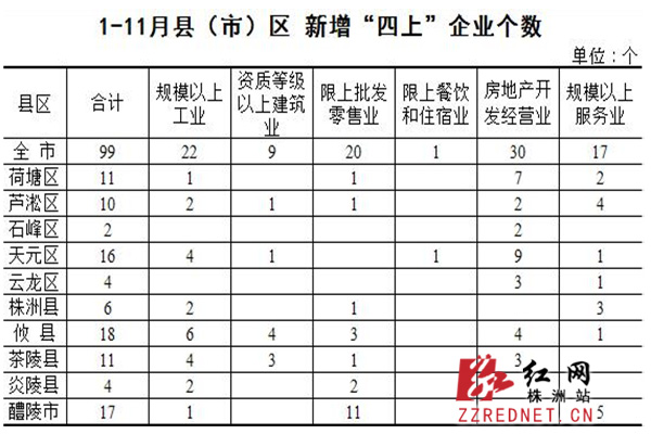 分縣區看,1-11月攸縣新增“四上”企業數量達18家,占全市“四上”企業入庫總量的18.2%;分專業看,1-11月株洲新增房地產開發企業30家,同比增加12家,占全市的比重為30.3%;分月份看,“四上”企業入庫主要集中在10-11月,共入庫50家,占1-11月“四上”企業累計入庫總數的50.5%。