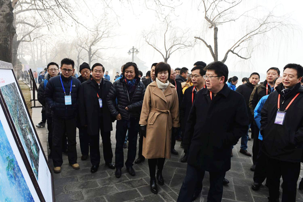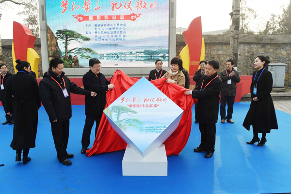 中攝協主席王瑤,黃山市委書記任澤鋒,北京市公園管理中心主任張勇,北京市海澱區委常委、宣傳部長陳名傑為攝影展揭幕並觀展。揭幕儀式由黃山市人民政府副市長劉光主持。