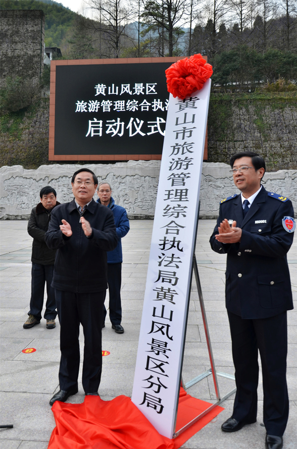 【香港商報網訊】記者吳敏 通訊員葛旭芳 蔡季安報導:2016年12月30日,具有獨立行政執法主體資格的黃山市旅遊管理綜合執法局正式掛牌運行,並在旅遊管理領域集中行使原先涉及8個部門的88項行政處罰權。黃山市委書記任澤鋒、市長孔曉宏、市人大常委會主任程迎峰、市政協主席畢無非,安徽省法制辦副主任張敏,黃山市委常委、黃山風景區管委會黨工委書記黃林沐等出席啟動儀式。