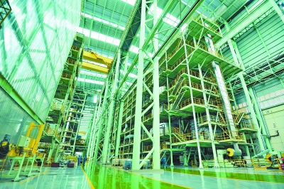 婁底經濟開發區,華菱安賽樂米塔爾汽車板有限公司廠內高度自動化的生產線。