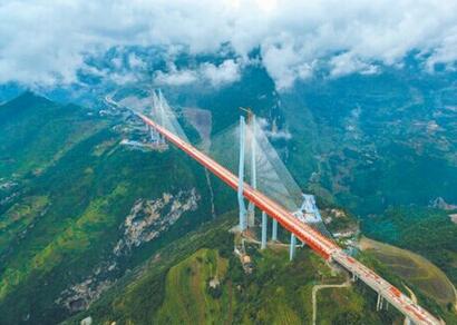 “一桥跨云贵,天堑变通途。”横跨云贵两省、高达565米(相当於约200层楼高)的北盘江大桥12月29日上午正式通车,云南与贵州之间又一条高速公路实现贯通。