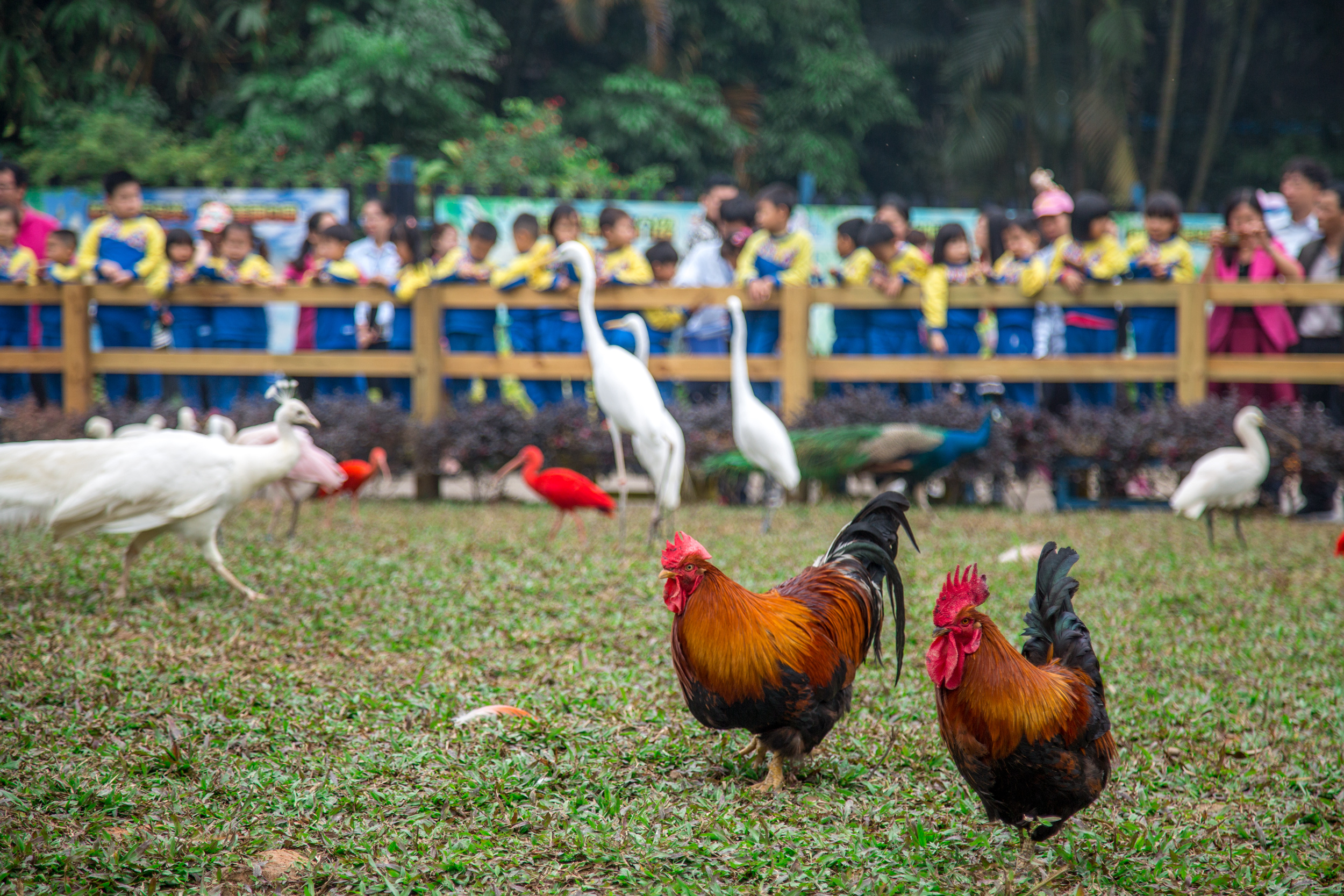 據介紹,面積達200畝的金雞廣場分為“金雞迎春”、“雞祥如意”、“恭鶴新禧”等幾大展區,既有長隆飛鳥樂園成功繁育的數量龐大的各種孔雀,也有全新升級的火烈鳥島,與旁邊的紅鹮展區一起,與你紅紅火火迎雞年!