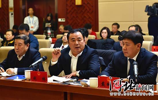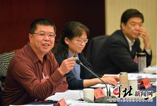 1月8日下午,民革、无党派组的王轶委员(左一)在讨论省政府工作报告时,就如何扶植装备制造业发展等问题提出意见和建议。河北日报记者田明摄