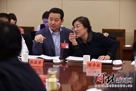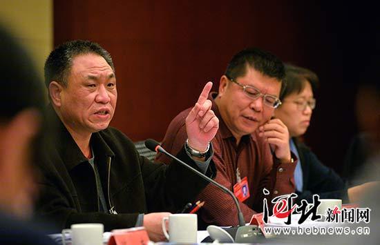 1月8日下午,省政协十一届五次会议农业组在讨论省政府工作报告时,一位委员关于“推进农业供给侧结构性改革,提高农产品供给质量”的发言,引起张学敏(右一)和张俊岩(右二)委员的共鸣,大家纷纷加入到热烈的讨论中。河北日报记者赵永辉摄
