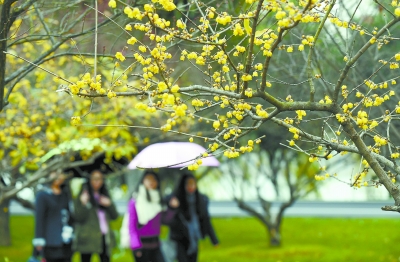 長沙市橘子洲景區梅園內的臘梅競相綻放。