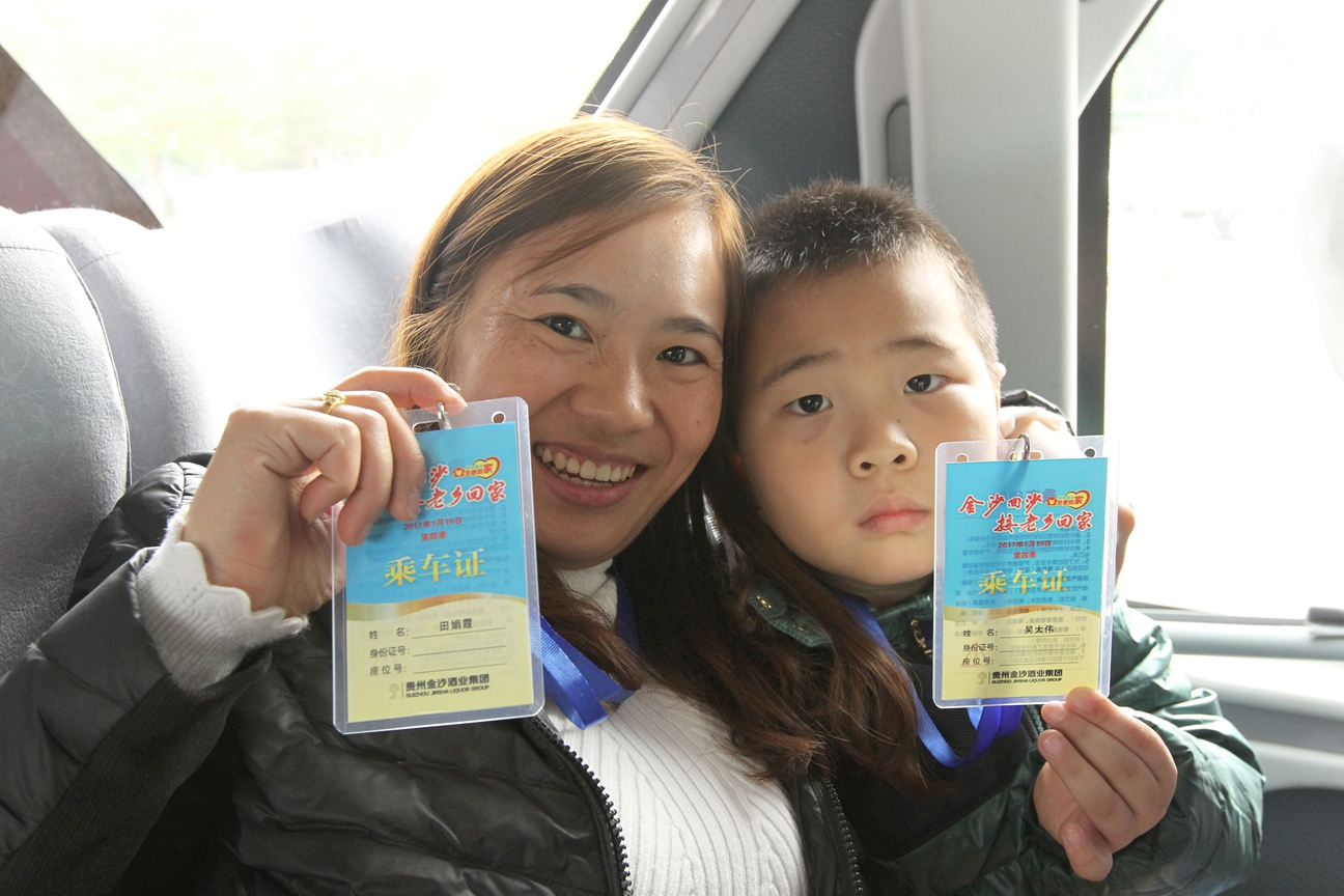 據了解,為了讓眾多貴州家庭在春節期間享受到家人團聚的溫情和天倫之樂,貴州省婦聯、省婦女兒童發展基金會與金沙酒業集團于2014年1月首次啟動以關愛貧困家庭和農民工為主題的“金沙回沙·接老鄉回家”公益,免費從珠江三角、長三角地區接在外務工的老鄉回家過年,至活動以來,目前已免費接了近2萬名農民工回家過年。