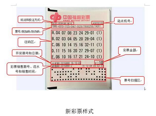據記者了解,新彩票相比原彩票,新彩票正面頂部的“中國福利彩票”標志變成紅色,字號也稍大了些;玩法、站點機號和票號(附加碼、防偽碼)信息顯示在“注碼區”區域的上方;注碼區各注號碼之間的行間變大,不在顯得那么擁擠;彩票金額信息字號變大,更為顯眼;最值得注意的是,票號掃描區的“條形碼”變成了“小方塊碼”。