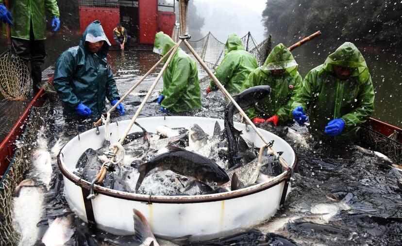 江西仙女湖冬捕進入旺季 日捕有機魚30萬斤