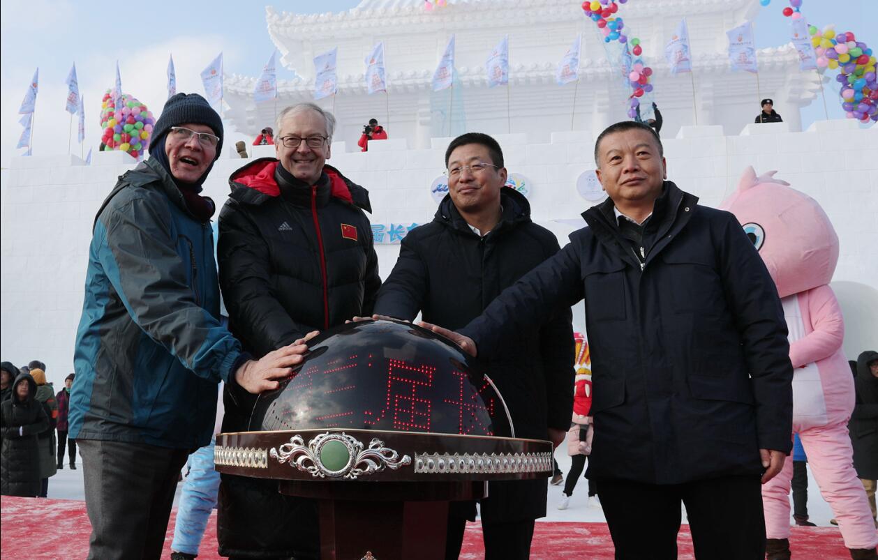 王子联、赵红石、郭励之、Tuomo jantunen等领导和嘉宾共同启动2017长白山国际冰雪嘉年华。.