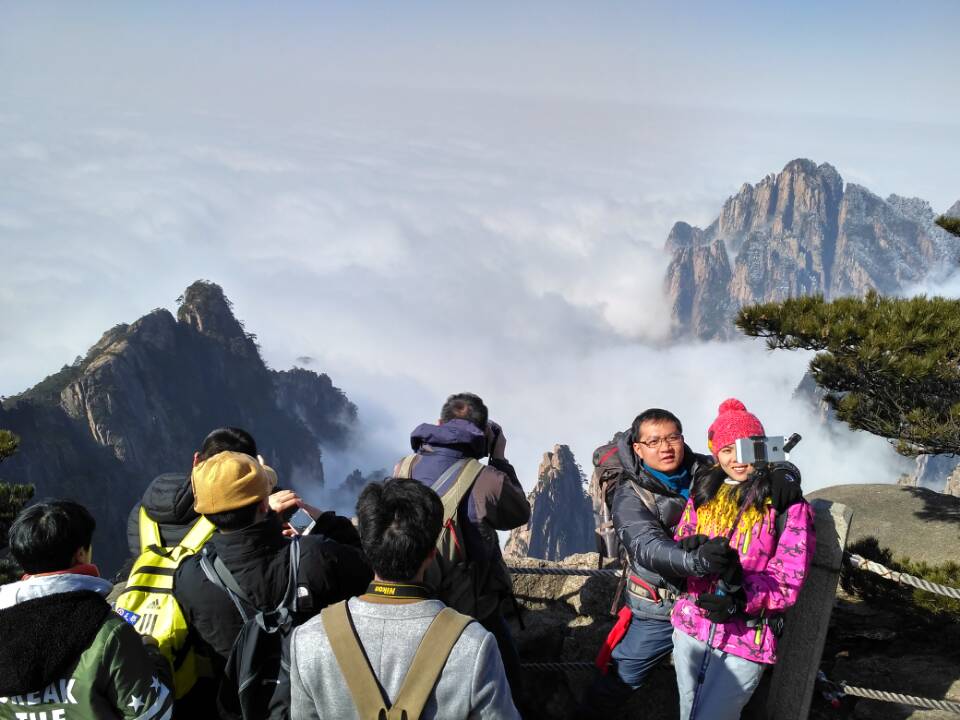 新春美景更加迷人。春節黃金周期間,景區以晴好天氣為主,除夕夜至年初四天氣晴朗,群峰、奇松、怪石一覽無余,年初三還出現了壯美的云海美景,在山上迎新年的中外游客更是慶幸,欣賞到了雞年的第一輪日出,收獲了黃山送出的一份新年大禮。年初五雖然有霧氣,但美麗的霧凇、清新的空氣,讓黃山增添了許多朦朧感,游客大飽眼福。