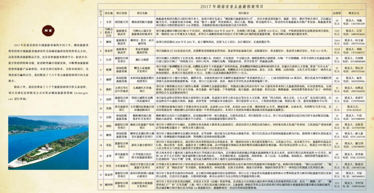 2017年湖南省重點旅游招商項目(請把手機橫過來看圖)
