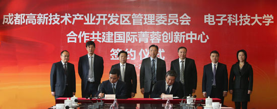 根據《合作共建國際菁蓉創新中心的協議》約定,雙方將在國際菁蓉創新中心內建設神經信息國際聯合研究中心、先進無線通信技術國際聯合研究中心等6個國際合作重大項目和大數據研究中心、機器人研究中心、信息地學研究中心、信息醫學研究中心、集成電路研究中心等20個跨學科特色研究中心。
