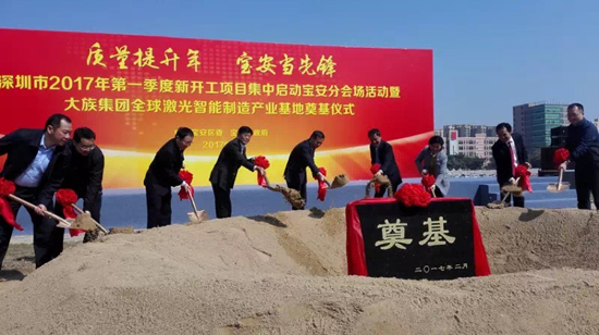 【香港商報網訊】記者王娜報道:2月15日上午,深圳市2017年第一季度新開工項目集中啟動寶安分會場活動暨大族集團全球激光智能製造產業基地奠基儀式在福海街道大族激光全球激光智能製造產業基地施工現場舉行。
