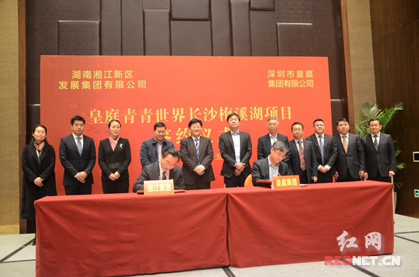 2月15日下午,湘江集團與皇庭集團簽署框架合作協議,標誌著投資130億元的青青世界長沙梅溪湖項目落戶湖南湘江新區。