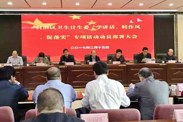 自治區衛生計生委黨組副書記、主任巴哈爾古麗·賽買提主持會議。委黨組成員、駐委紀檢組組長付輝生宣讀了《關於在“兩學一做”學習教育中開展“學講話、轉作風、促落實專項活動的實施方案”》。