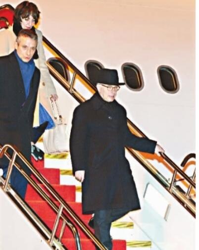 22日晚,卡澤納夫一行抵達武漢,走下飛機舷梯記者周超攝