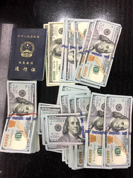 横琴海关连续查获的违规携带外币。