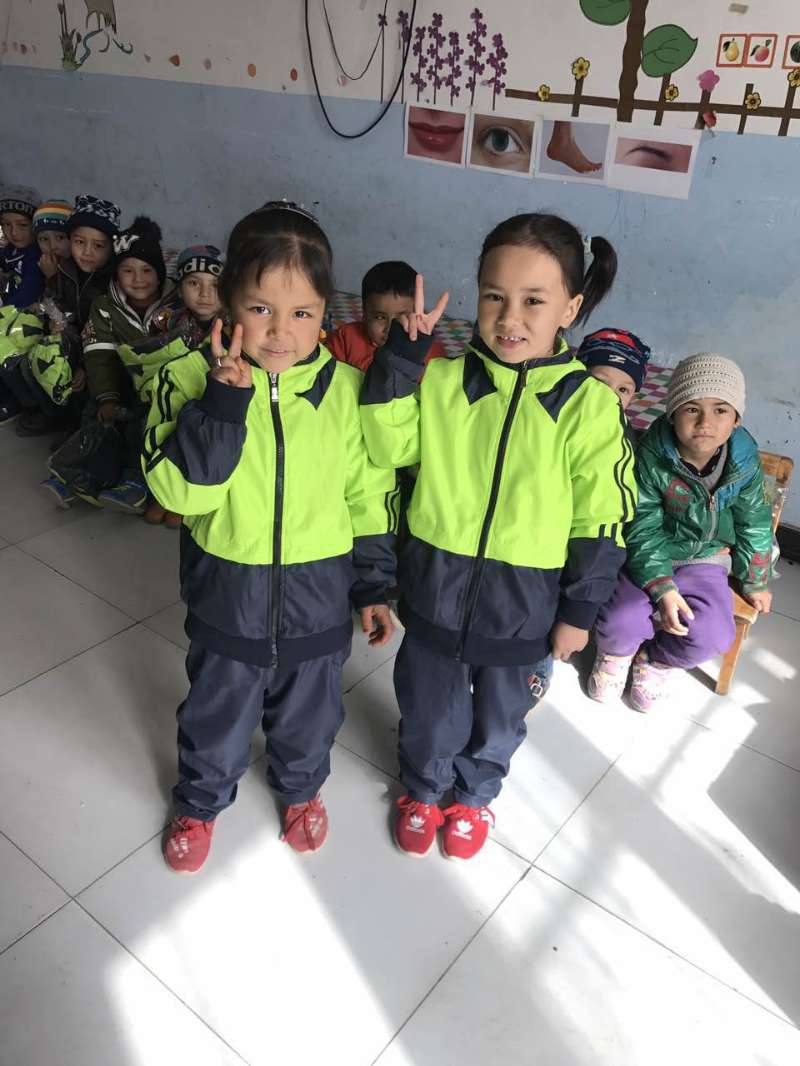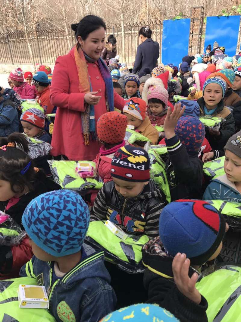 巴哈古麗·托勒恒作為該幼兒園的支教老師,在為小朋友們穿校服時很開心也很感動,360套校服和被褥,大部分來自遙遠的北京。
