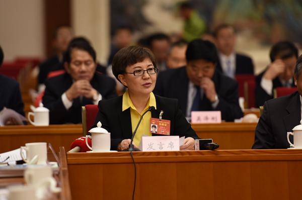 全国人大代表、国家电网四川省电力公司副总经理,成都供电公司总经理褚艳芳在全团会议上发言