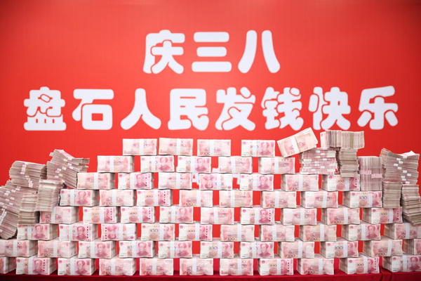 【香港商报网讯】记者吴梦琪报道:现金堆成山,员工们拿着麻袋来装钱……今天是38女神节,一大早,朋友圈就被盘石公司壮观的场面持续刷屏,这次盘石公司的女神节不仅送玫瑰送施华洛世奇,关键发放了数千万的现金红包,而且男男女女都有份,此次发到钱的员工,多则好几百万,可不需要麻袋才装得下吗?