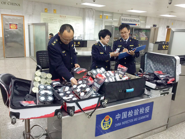 【香港商报网讯】记者陆绍龙、通讯员刘康钦、庄艳辉报道:9日,珠海检验检疫局对媒体通报,该局九洲办事处旅检科工作人员于7日晚,在3名经香港入境的旅客行李中截获大量未经检疫审批的动物源性猫、狗粮,共计212件,80.78公斤,为九洲口岸截获旅客携带宠物粮数重量之最。