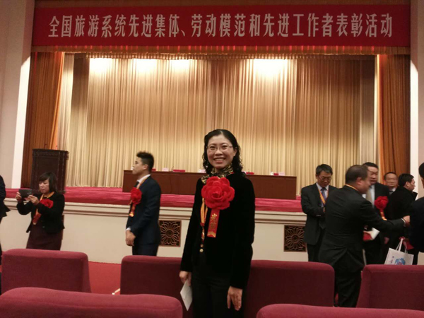 图为曾庆香在北京人民大会堂合影留念。
