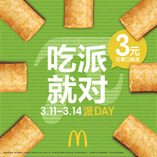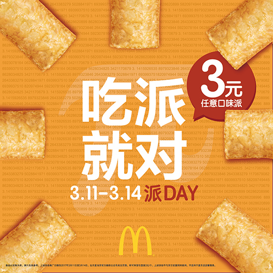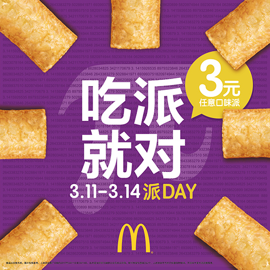 “吃派就对-潮人3月生日派对”激起了粉丝们的兴趣——活动现场,粉丝们积极参与。在具有中国风的派主题互动游戏“中国诗词大会—π你来”中,粉丝们也没有“吝啬”自己的才华,含有“三”、“一”、“四”的诗句也信手拈来。“方言π”的互动环节更将活动推向高潮,粉丝们用自己的家乡话说 “π”,不仅为粉丝们带来了欢乐,也让粉丝们在现场找到了老乡。社交网络中也有年轻人不断上传自己背诵π的视频、或与自己刚买到的派合影,并且@麦当劳好像他们平时上传有趣事物时,@自己的好友一般。