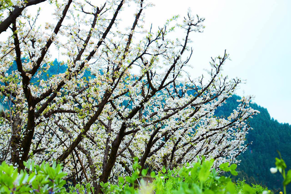 丹棱幸福古村的梨花一夜之间竞相开放